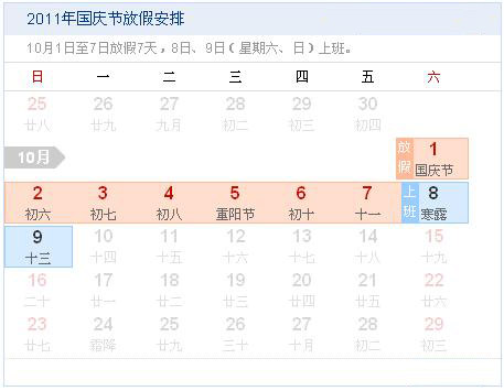 根據(jù)國務(wù)院對2011年國慶節(jié)的放假通知,結(jié)合我公司實(shí)際情況,我司十一放假具體安排如下: