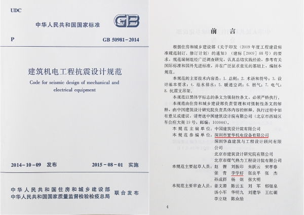 2015年8月1日,由住房和城鄉建設部發布的國家標準《建筑機電工程抗震設計規范》正式開始實施,機電系統抗震將成為今后建筑中必不可少的的設計。規范要求抗震設防烈度為6度及6度以上地區的建筑機電工程設施,必須進行抗震設計。